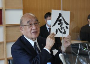 荒井正吾知事は、今年を表す漢字に「念」を選んだと発表した。新型コロナウイルス感染症やロシアのウクライナ侵攻など数々の問題があったことを挙げ、「冷静さを失わずに心の動揺を抑えて念じることが大事だと感じた」と振り返った。