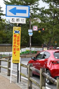 同交差点では、北向きと東向き、西向きの3方向は、前方の信号が赤や黄色であっても、周りの交通に注意しながら左折できる。観光客らで混雑する奈良公園前の渋滞を緩和するために、昭和34年に県内で初めて設定された。だが、「分かりにくい」との指摘は多く、勘違いして停止する車両もあった。