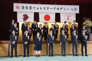 林業の担い手を育成する「県フォレスターアカデミー」の入学式が6日、県立奈良南高校(吉野町)で行われ、18~52歳の16人がそれぞれの目標に向けた第一歩を踏み出した。