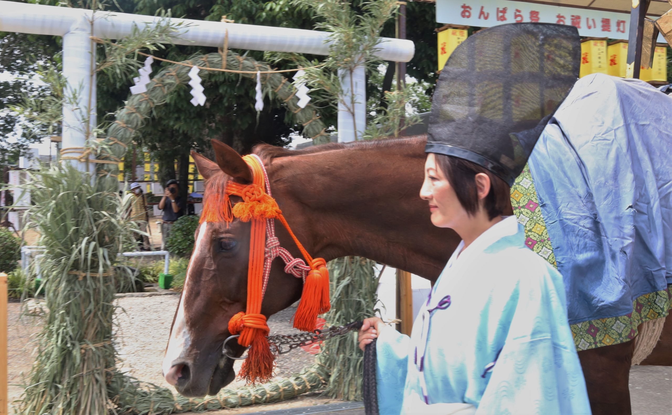 「おんぱらさん」と呼ばれて親しまれている奈良県桜井市の綱越神社で31日、夏の例祭(おんぱら祭)があり、神馬引きや茅の輪くぐりなどで参列者らが無病息災を祈った。