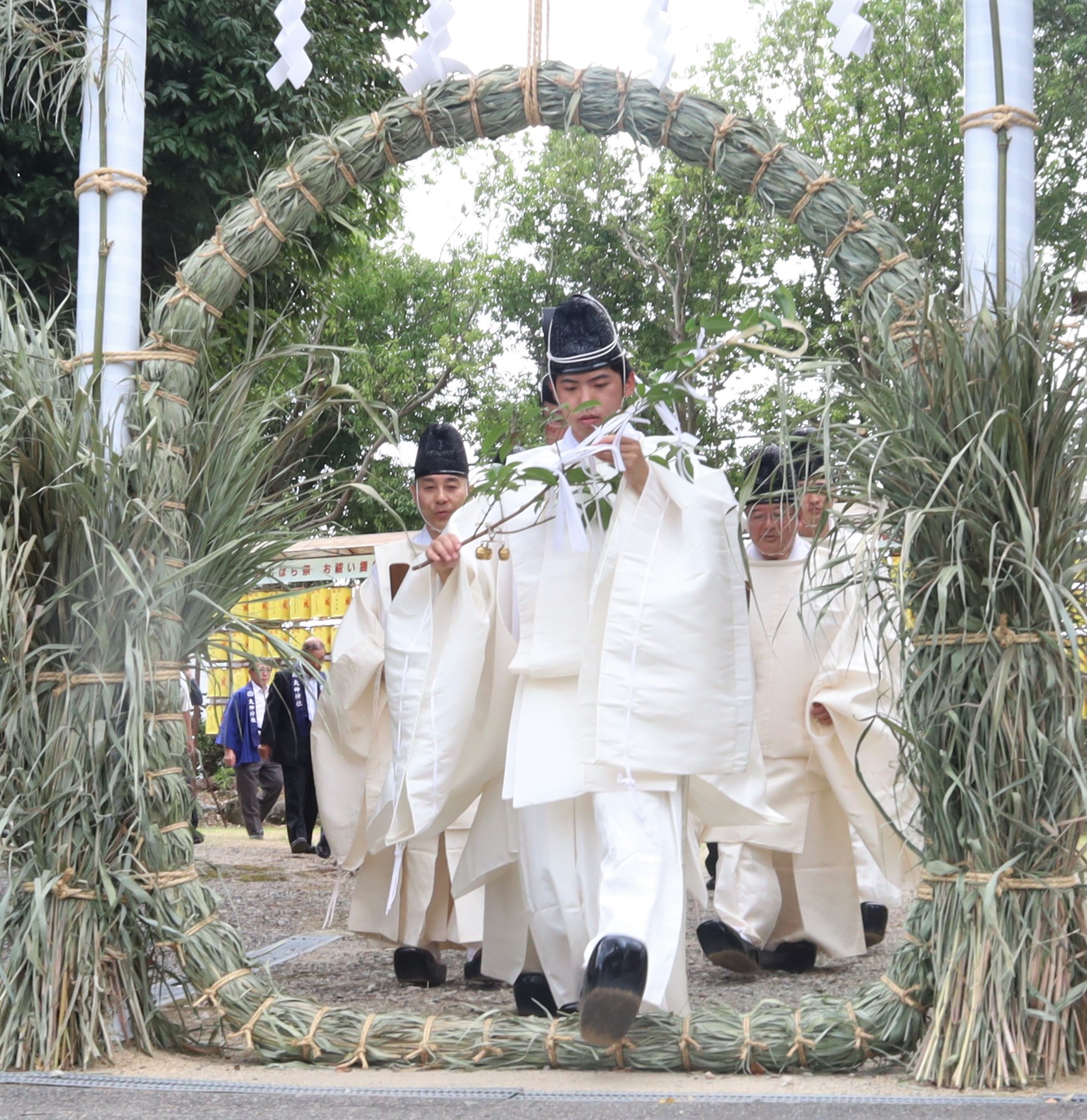 同神社は、大神神社の摂社で延喜式神名帳に記載される古社。「夏越」が訛って「綱越」の社名になったとも言われ、「おんぱら」も「お祓い」の転訛とされる。