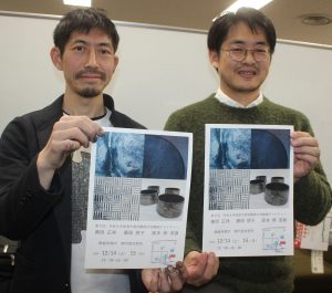 3人は2月にチャリティー展を開いた阪本修さん(45)と藤岡正祥さん(49)、それに今回加わった藤岡さんの妻の朋子さん(45)。いずれも石川県立輪島漆芸技術研修所で学んだ。能登半島で9月に豪雨による被害もあったことから心を痛め、2回目の展示会を開くことにした。日常雑器やアート作品、アクセサリーを並べる。午前10時~午後4時。