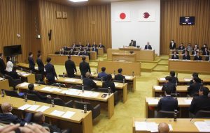 K-POPアーティストによるコンサートの関連予算を削除した予算修正案を採決する奈良県議会=奈良市