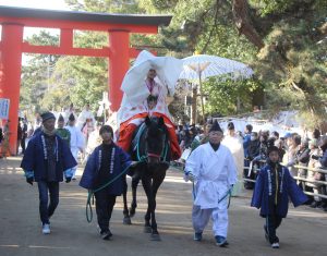 おん祭は平安時代に関白、藤原忠通(ただみち)が天下太平を願って始め、今年で889回目。その神事芸能は国の重要無形民俗文化財に指定されている。