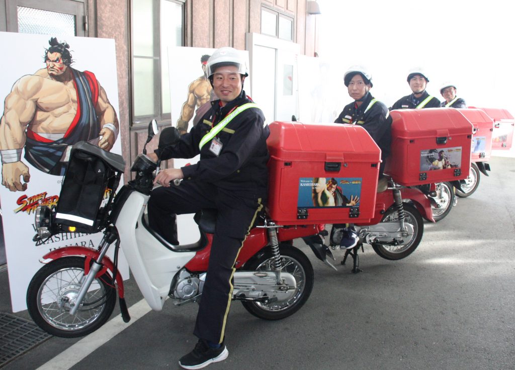 今回、橿原郵便局の協力を得て、郵便物を収納するバイクのキャリーボックス側面に「リュウ」「ケン」「春麗(チュンリー)」「エドモンド本田」の4人のキャラクターのステッカーをはり、市内を走る。同局は「人気キャラクターを通じて、さらに郵便に親しんでもらえれば」としている。