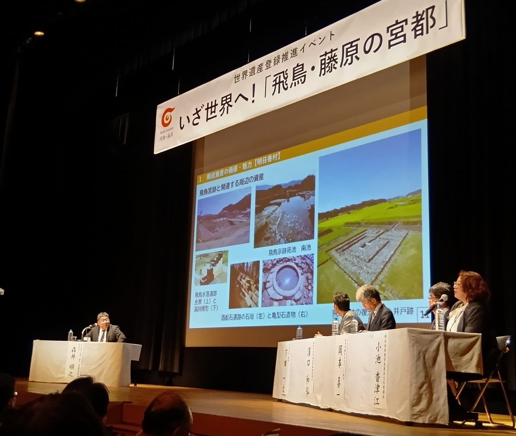 桜井市観光まちづくり課の岡本喜一課長は「飛鳥・藤原の世界遺産登録によって県中部にもインバウンド(訪日客)が来てくれる」と期待を込め、登録推進協議会の森井順之事務局長は「世界遺産登録へみんながプレーヤーになることが大切」と締めくくった。