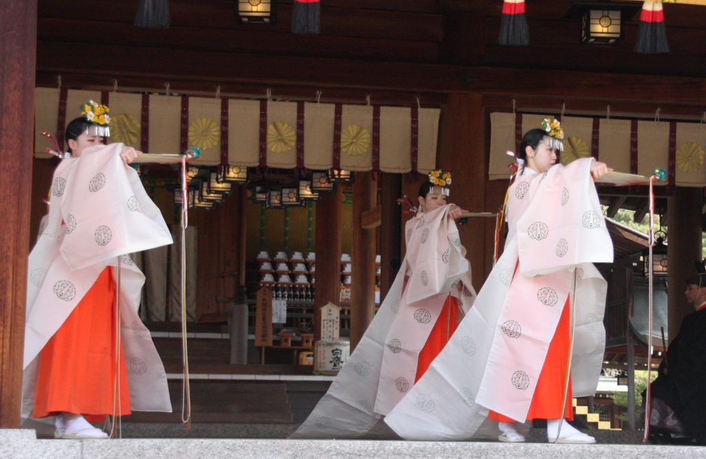 厳かに奉納された神楽「扇舞」=橿原市の橿原神宮