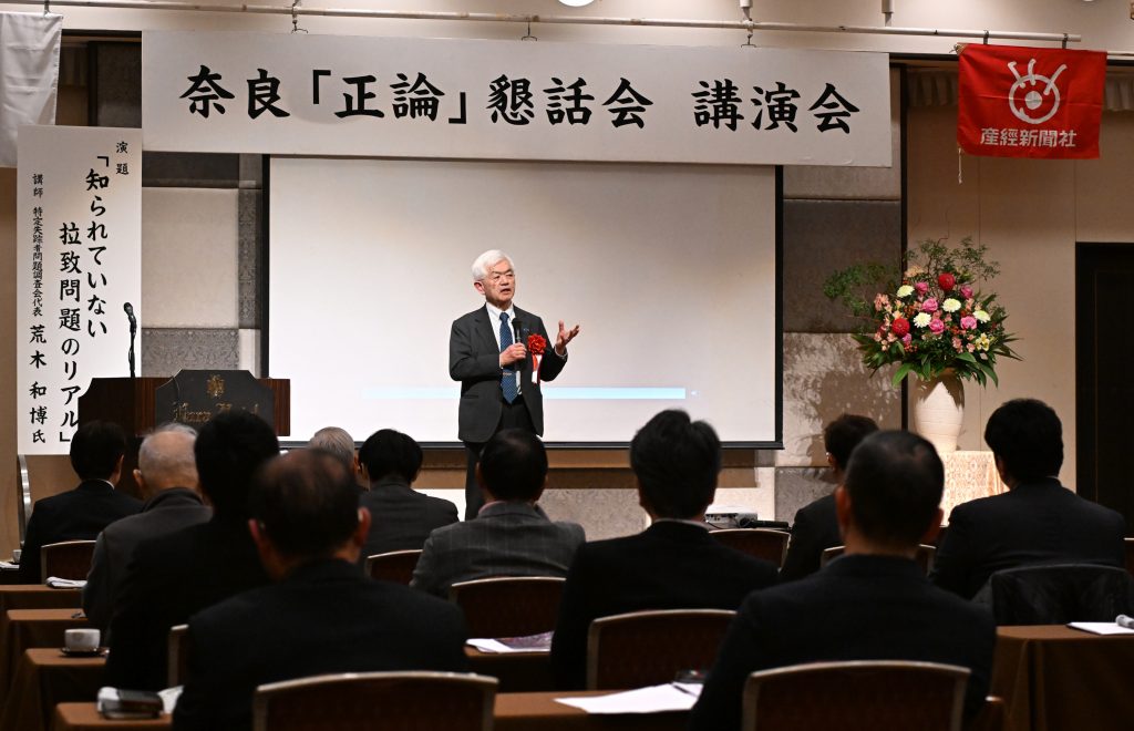 一日も早い家族との再会を願いながら、いまだ問題解決、真相究明の糸口を見いだすことができない北朝鮮による拉致をテーマに、奈良市の奈良ホテルで1月30日に開催された奈良「正論」懇話会の講演会。特定失踪者問題調査会の荒木和博代表が「知られていない拉致問題のリアル」と題して講演した。主な内容は次の通り。