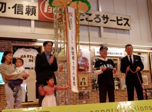 1万人目の来館者となったのは、2歳と3歳の子供たちと一緒に訪れた大和郡山市の公務員、上田泰司さん(40)と妻の明子さん(39)。「子供たちが乗り物に興味を持つようになって初めて訪れた。昔の車は本当にかっこいいです」と喜んだ。