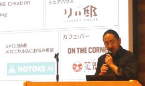 千葉工業大学の伊藤穰一学長は、新しい世代のインターネット「Web3」や人工知能(AI)について講演した。AIの分野で日本は投資も研究も遅れているとしたが、「海外で発明されたものを日本で仕上げたり、一般化したりすることはよくある」と説明。「アメリカが開発する競争的なAIより、みんなと仲良くできる日本のAIの方が社会のインフラに適しているのではないか」と今後の開発の可能性を指摘した。
