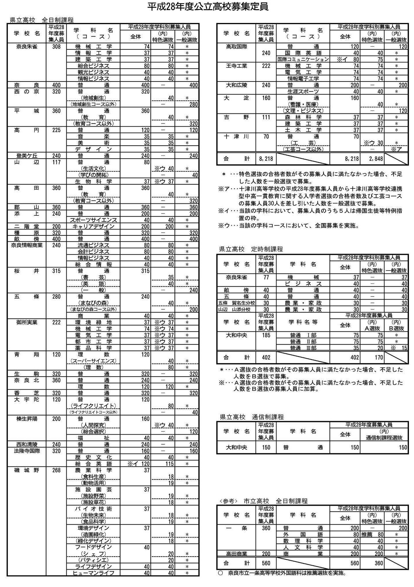 来春の中学卒業者数は前年度比500人以上の減少見込み。これをもとに全日制の定員総数を8218人とし、平城、郡山、橿原、榛生昇陽の各普通科でそれぞれ40人減った。