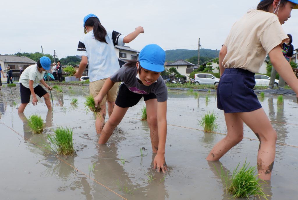 児童たちは秋には稲刈りも行う予定。