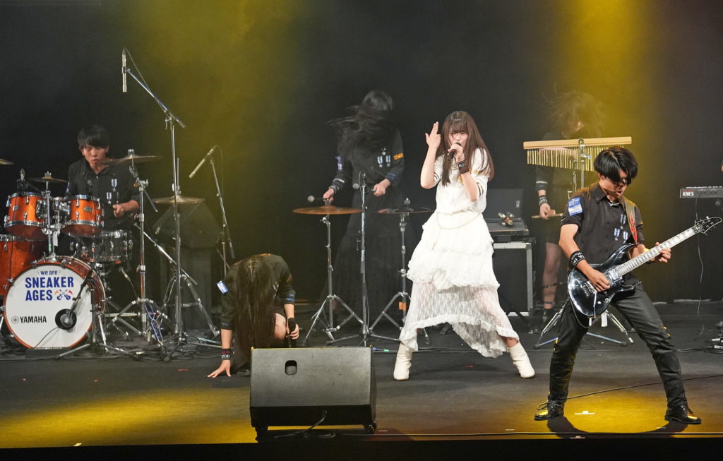 大阪市中央区の松下IMPホールで22日に開催された「第5回全国高校軽音楽部大会 we are SNEAKER AGES(スニーカーエイジ)」(産経新聞社、スニーカーエイジ実行委員会、三木楽器主催、大阪芸術大学など協賛)の関西地区グランプリ大会。県勢は奈良育英がグランプリに輝いた。