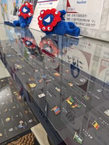 同協会は、来年2月に町制100周年を迎えることから100カ国との交流を目指し、町の公式マスコットキャラクター「雪丸」がドローンで羽ばたいているデザインのピンバッジを制作。会場内の海外パビリオンに職員が直接出向いて交換を交渉し、18日には、コンゴ民主共和国やカメルーンのほか、アイルランド、タイ、ベルギーといった国々や企業パビリオンを出展しているパソナグループとも交換した。