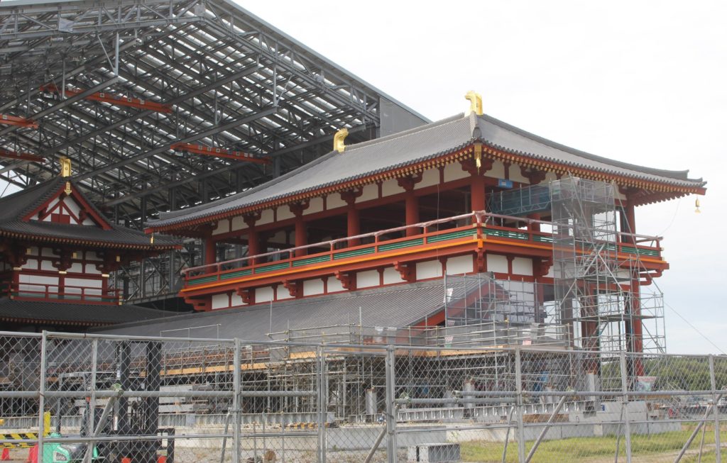 東楼と西楼は大極門を挟んで東西対称の位置にあったとされる。整備では木造2階建て、建築面積約360平方㍍、高さ約18㍍の規模でよみがえらせる。工事費は約60億円。今年度内の完成を目指している。