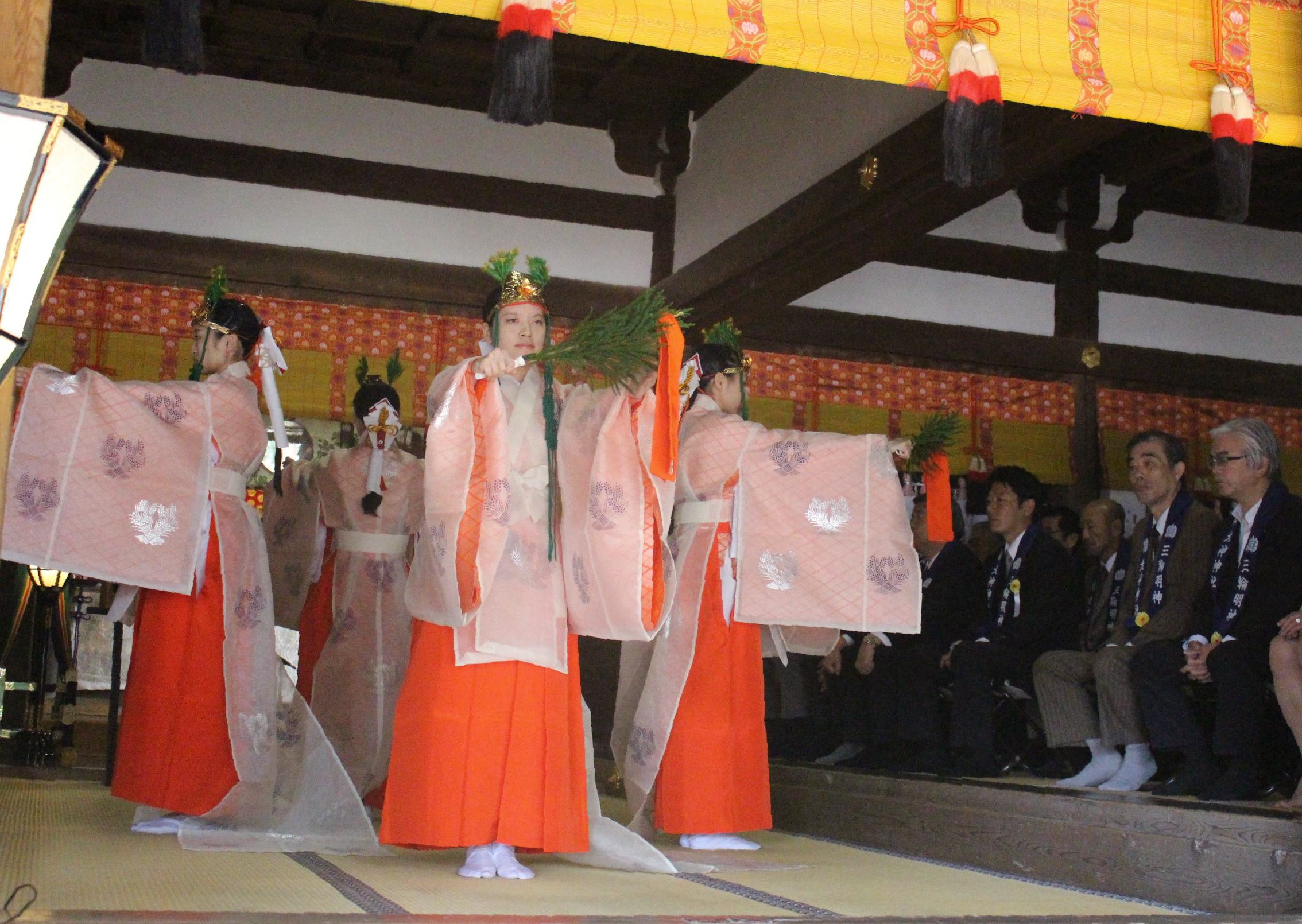 「うま酒みわの舞」を舞う4人の巫女