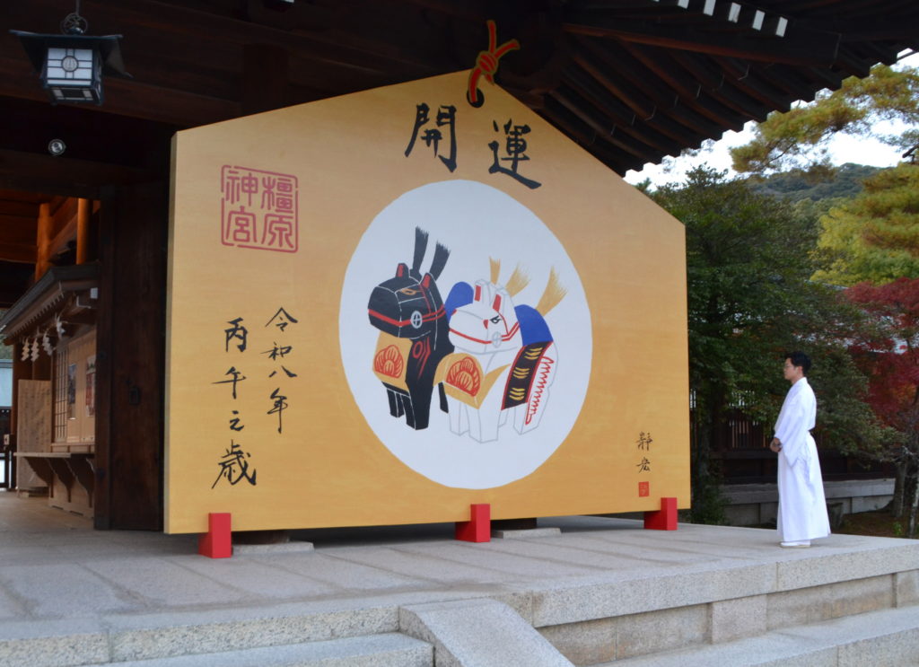 来年の干支「午」の大絵馬お目見え 橿原神宮