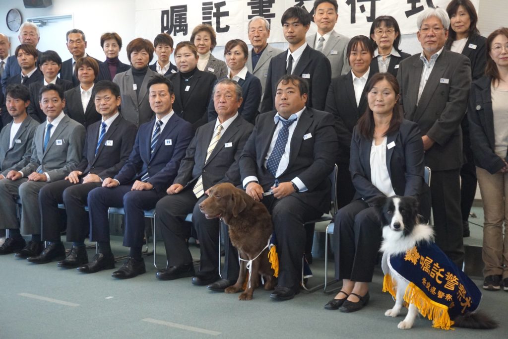 嘱託式で、県警の植田和樹・刑事部参事官は「警察犬は悪いやつに恐れられ、警察官や善良な市民にはものすごく信頼がある」と賛辞を贈り、「昼夜を問わず出動要請があるかもしれませんが、よろしくお願いします」と協力を求めた。