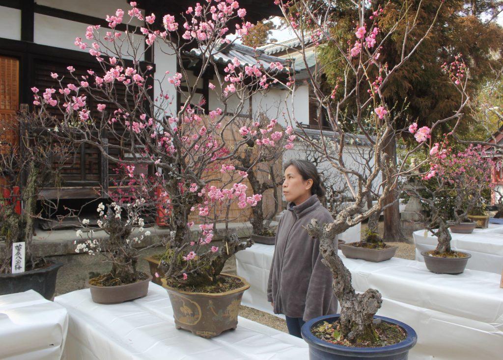 盆梅が見頃、かぐわしく 奈良市の菅原天満宮