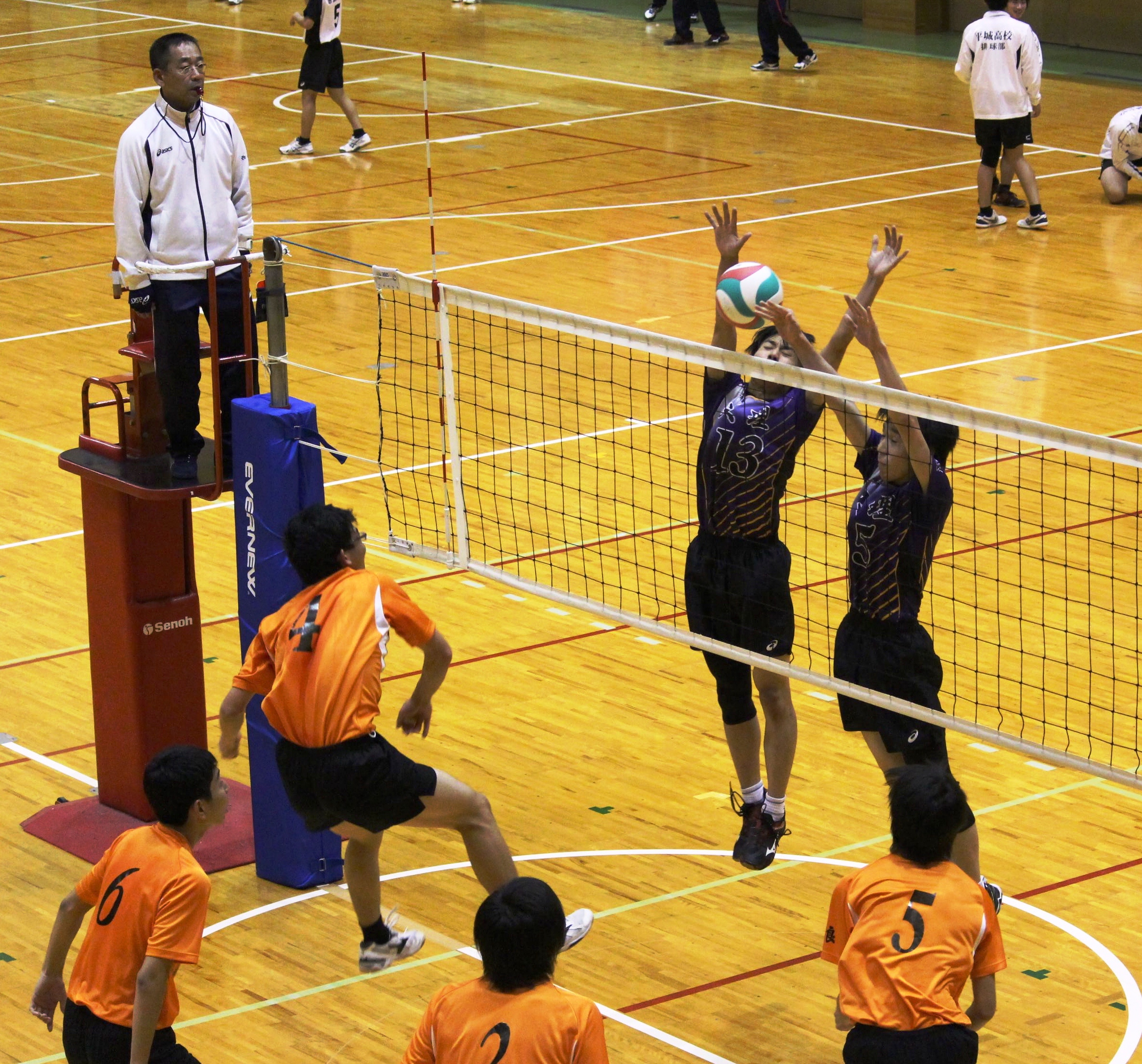 大会5連覇を目指す第1シードの添上は、2回戦で奈良大付と対戦した。第1セットで開始から8連続で得点し、相手を圧倒。3年の前田進之介選手と長田智己選手が次々と相手のブロックを抜く鋭いスパイクを決めるなど、最後まで危なげない試合運びを見せた。