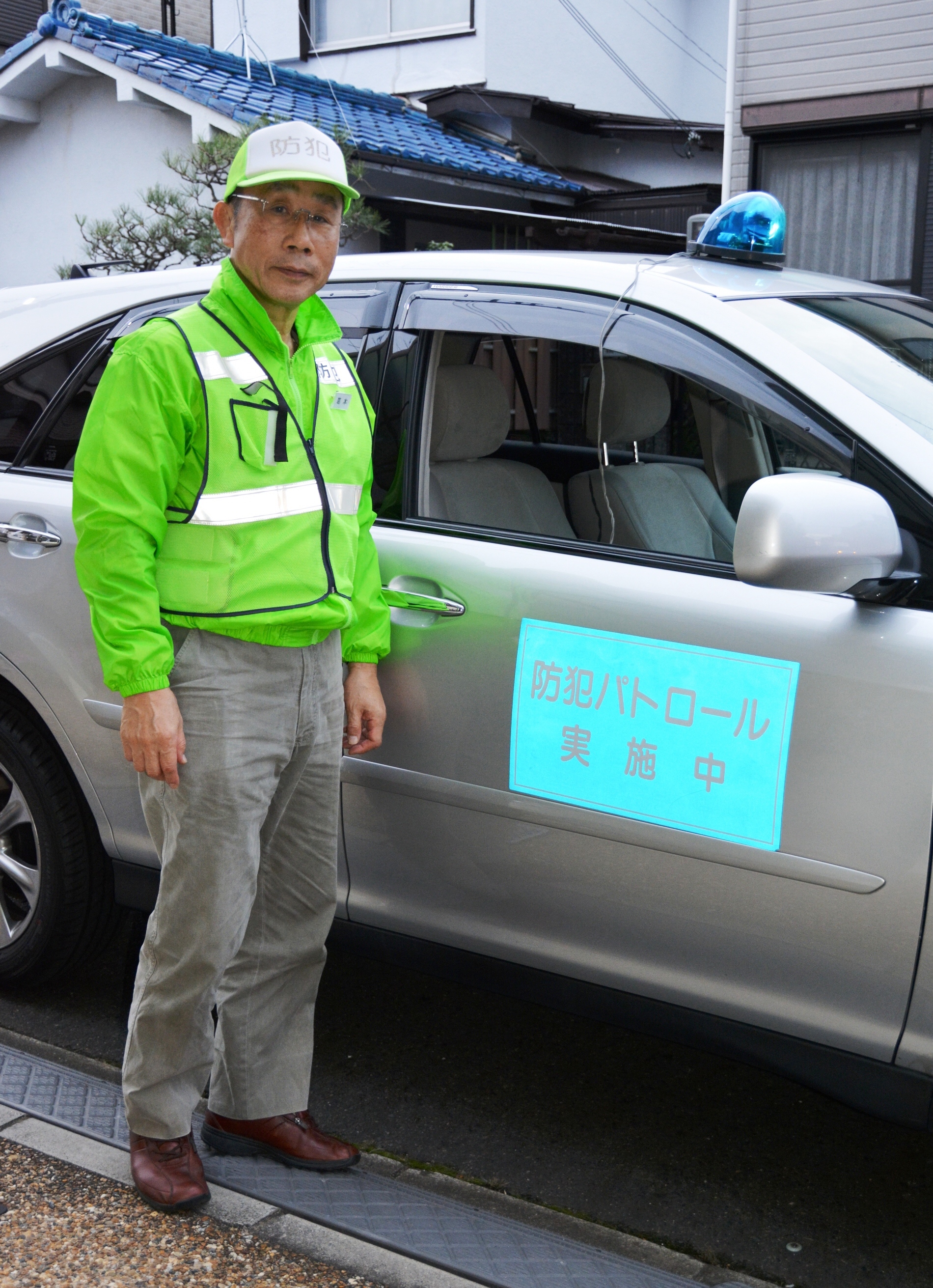 退職を控えた21年3月、自ら青パトの許可証を取得した。退職後はすぐ、県警OBと2人で月5回程度、青パトで地域を巡回。約15人でつくる「自主防犯ボランティア」メンバーで歩きながらの巡回にも取り組み始めた。「気をつけて帰りや」などと声をかけながら夕暮れ時、人目につきにくい公園などで見守り活動を続けている。