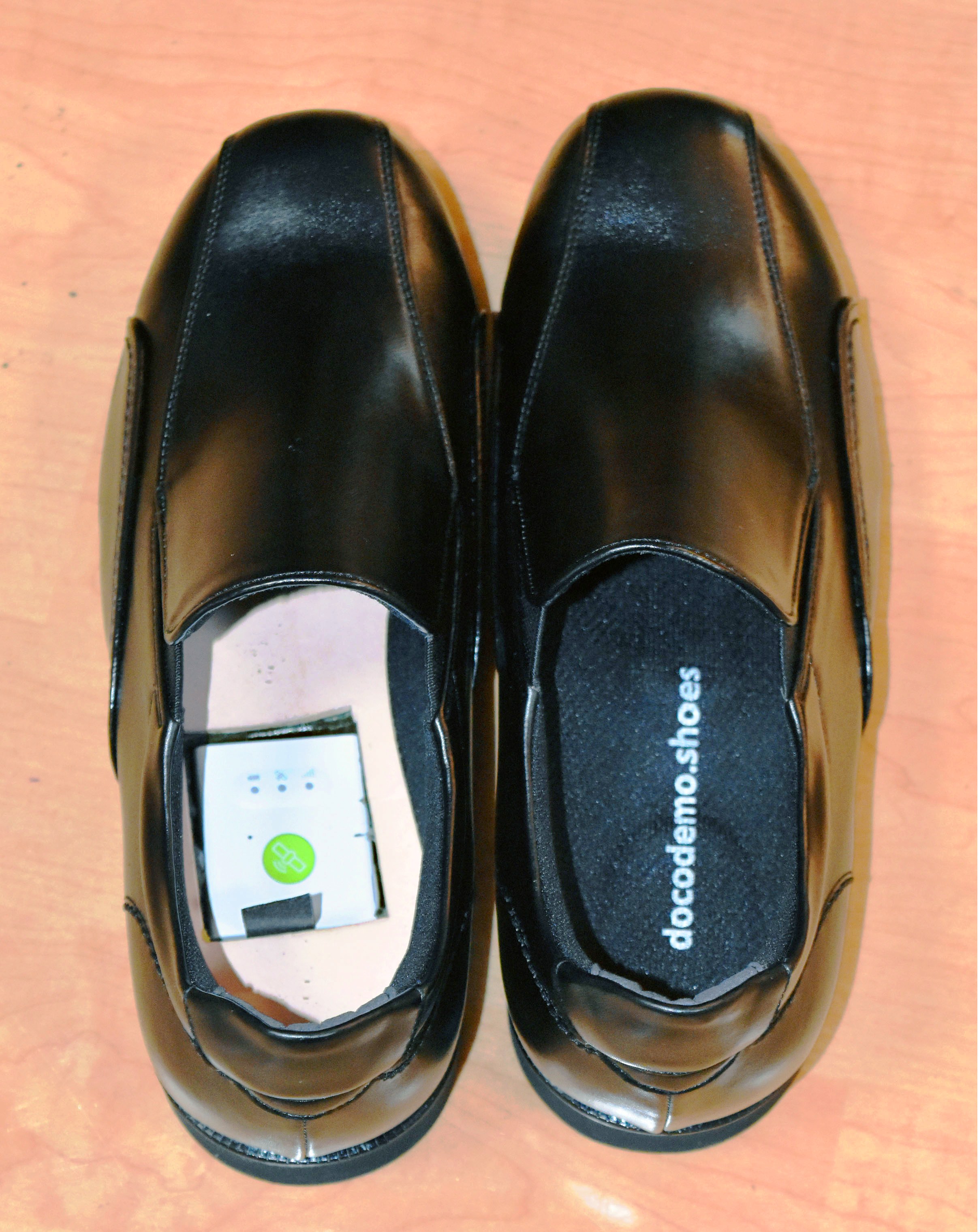 サイズは女性用が22~24センチ、男性用が24~26・5センチ。合成皮革製で黒色。税別3万5千円で、通信料として月額1500円が別途必要。