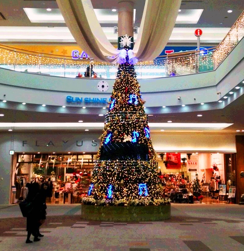 1階のサンシャインコートには、高さ約8メートルのクリスマスツリーも登場。約1万5千個のLEDを使い、一足早くクリスマスムードを盛り上げている。
