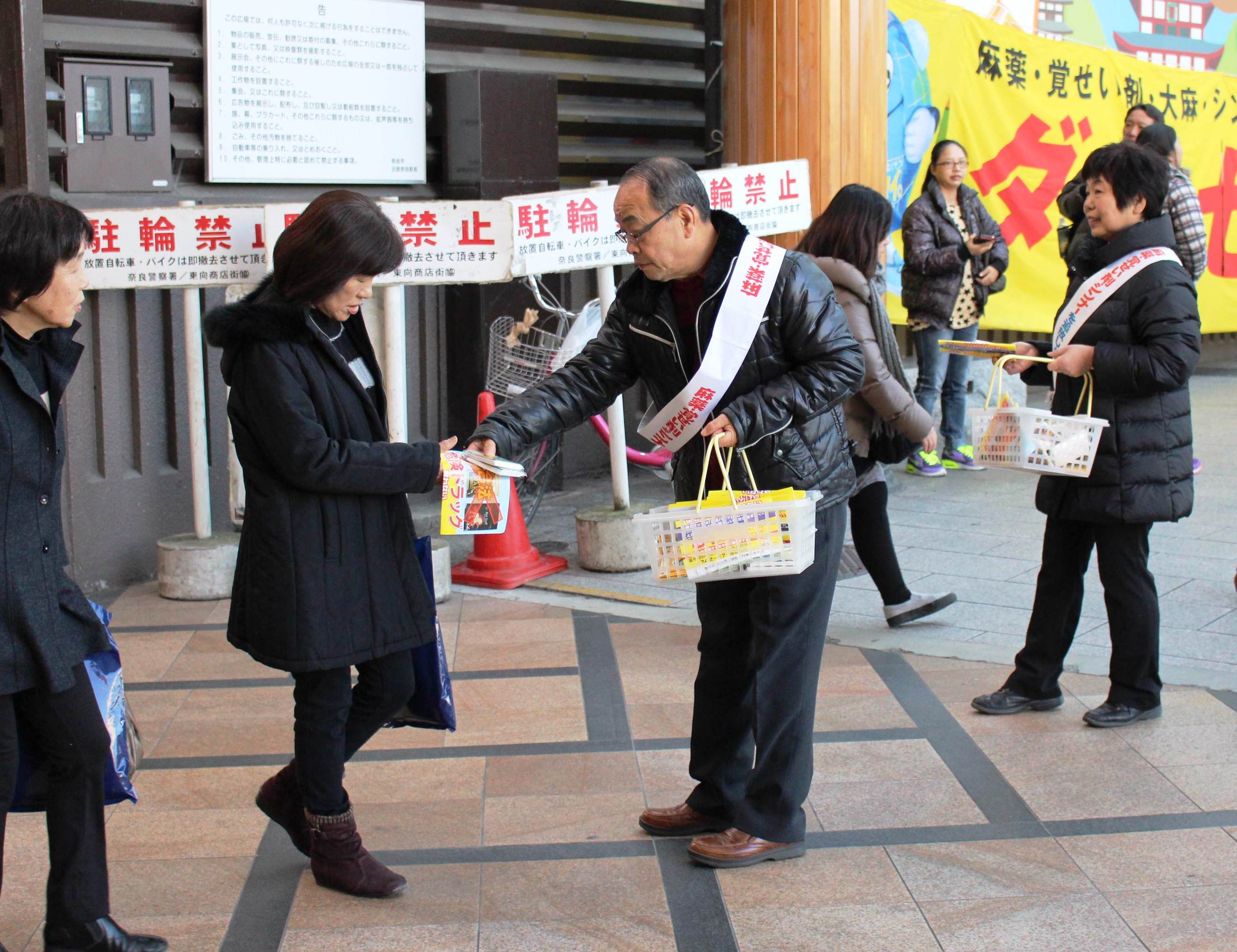 薬物乱用の危険性を知ってもらおうと、奈良市の近鉄奈良駅前広場で8日、薬物乱用防止街頭キャンペーンが行われた。