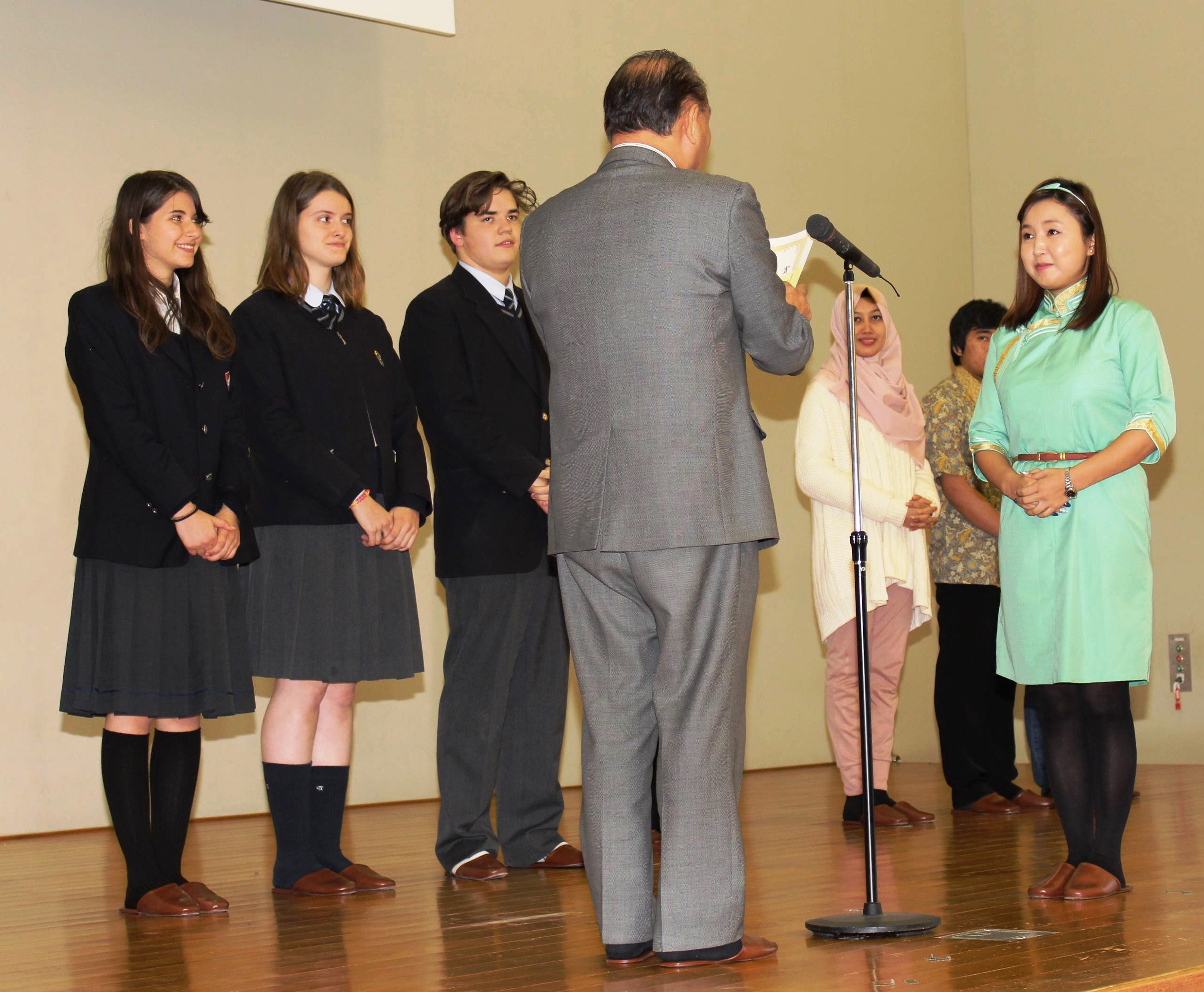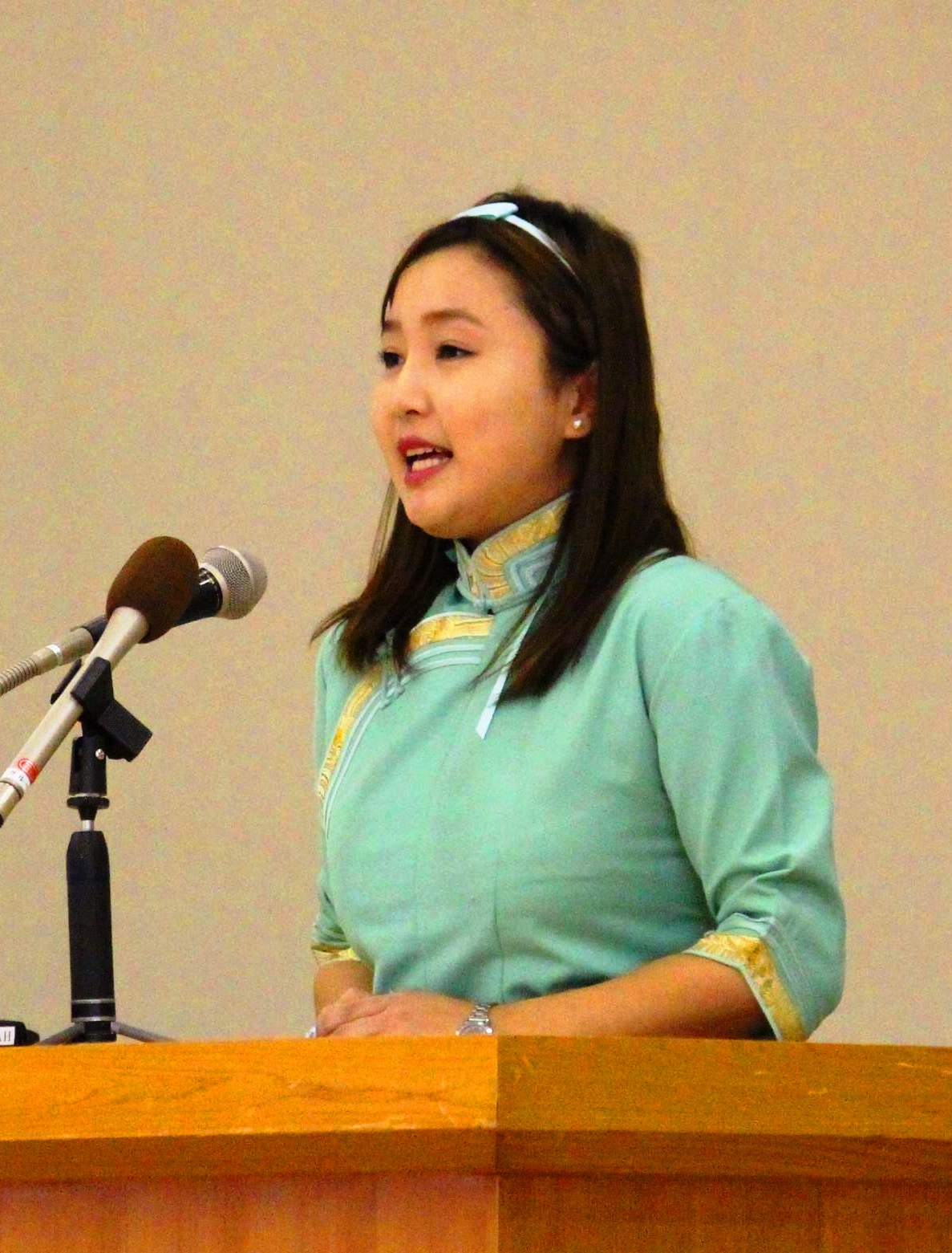 「日本で学んだことを生かしモンゴルに帰ったらファッション雑誌を絶対に作りたい」と話し、「何度も書き直し、暗記も大変だった。受賞はとてもうれしい」と笑顔を見せていた。