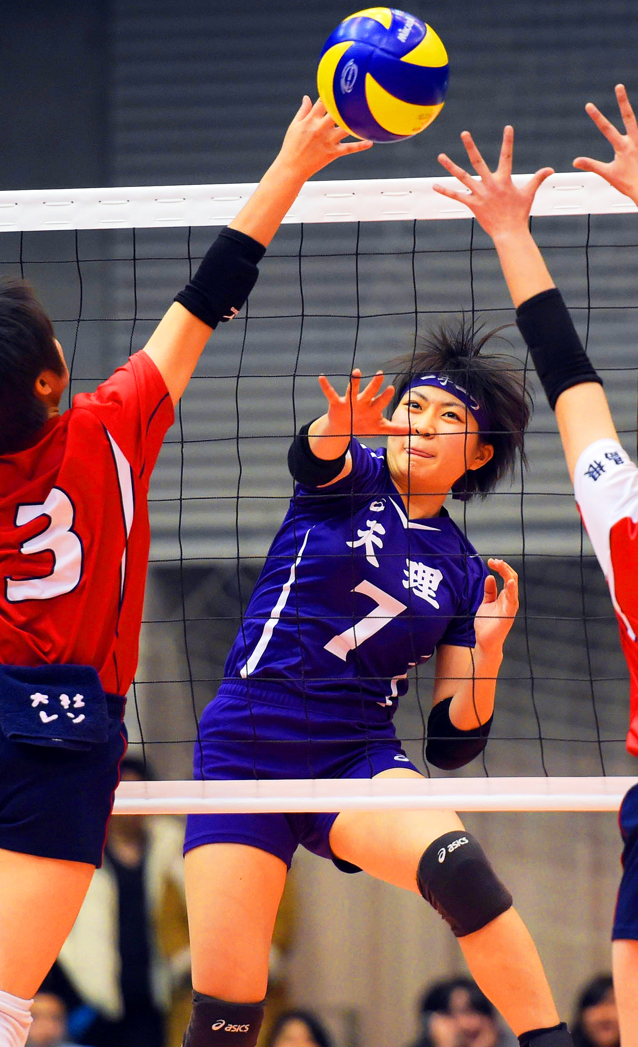 第2セットも中盤までは競り合う展開。センターの植村春菜(3年)を中心とした得意の速攻とブロックで得点を重ねてこのセットを奪い返し、勝負はフルセットにもつれ込んだ。