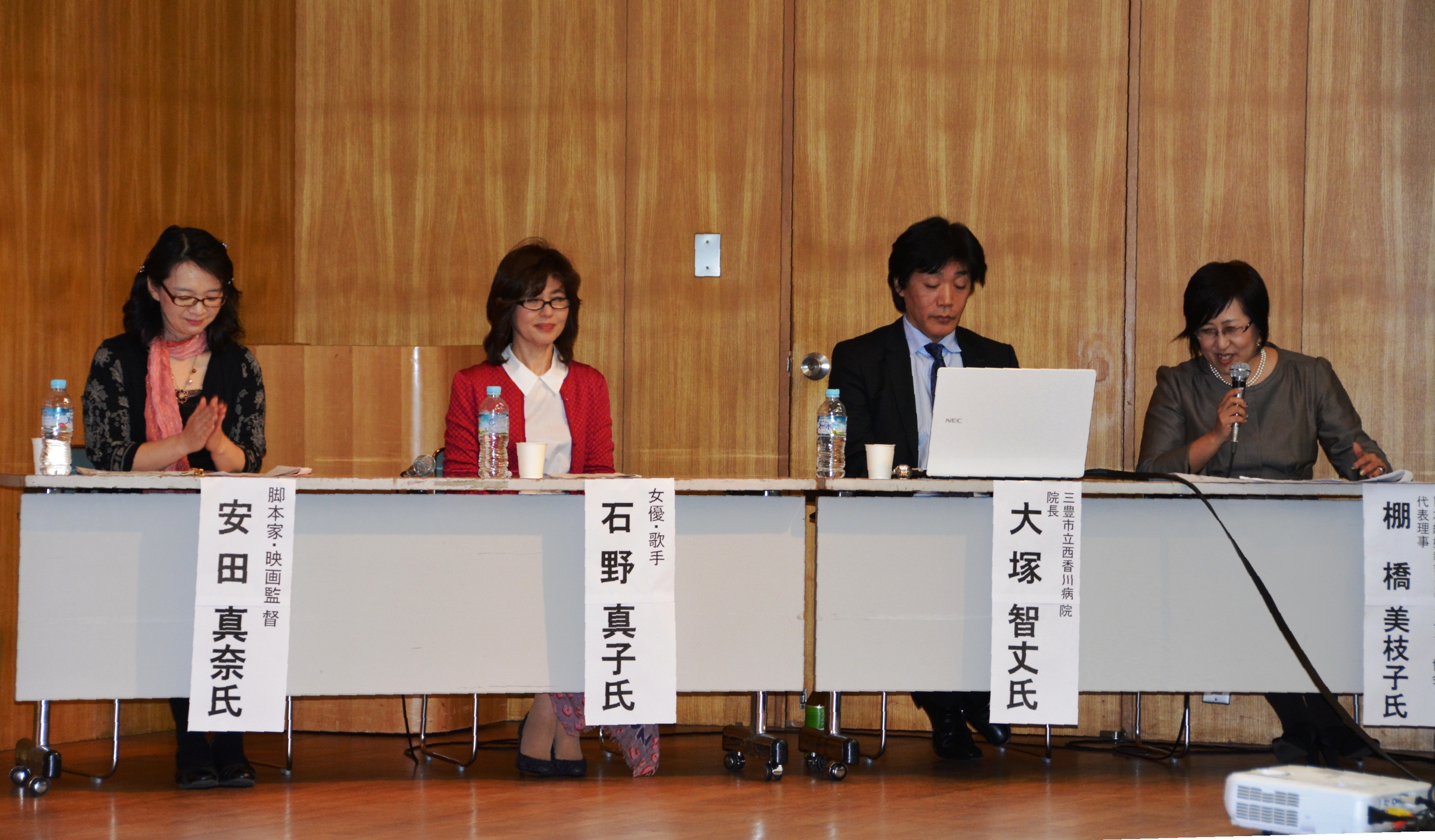 トークセッションでは、テレビドラマで子供に虐待する若い母親に手を差しのべる主人公を演じた女優の石野真子さんや、香川県三豊市立西香川病院長の大塚智丈さんらが、「すべての人に優しい社会を実現するために大切なこと」をテーマに話し合った。