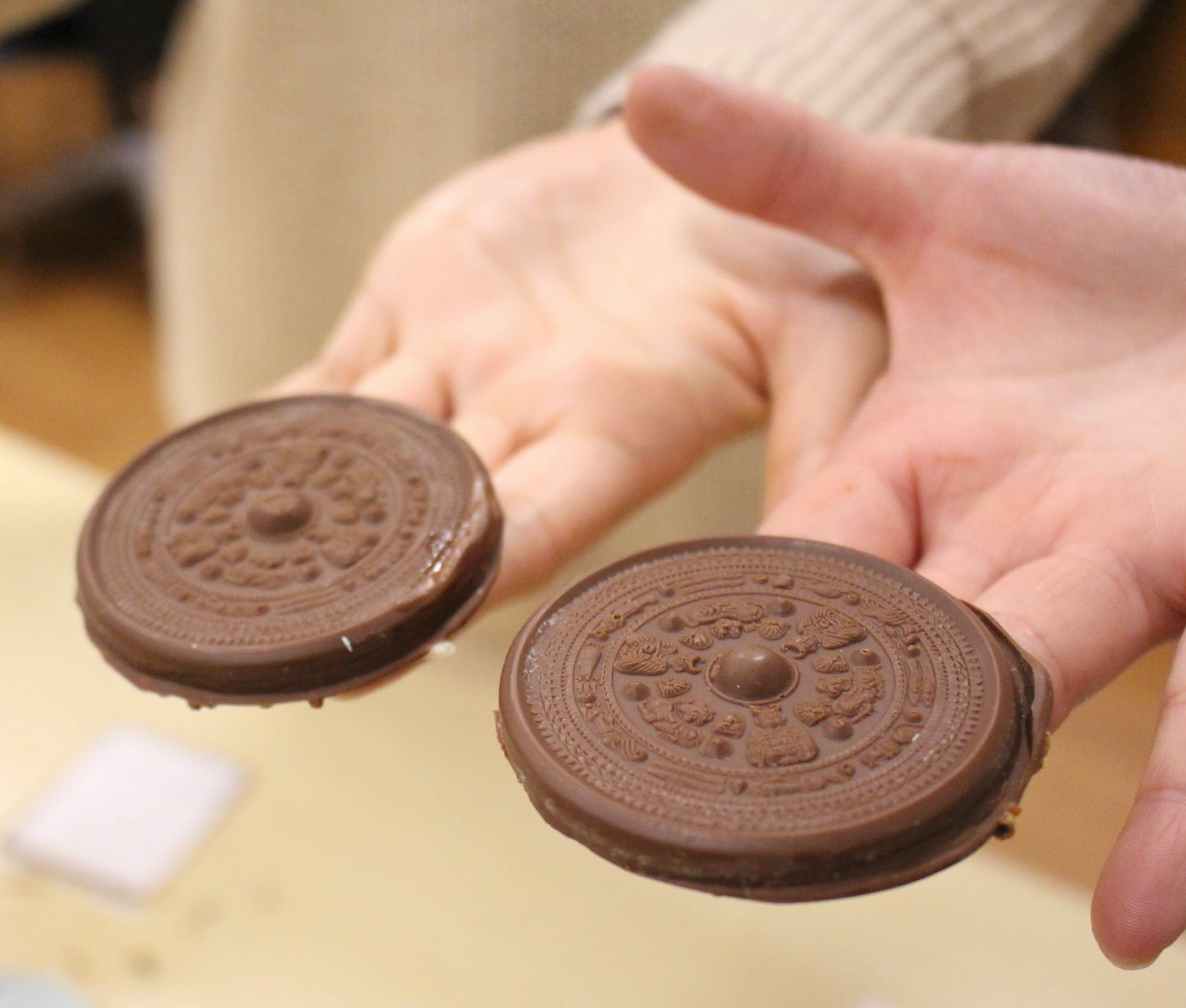三角縁神獣鏡をかたどったチョコレート