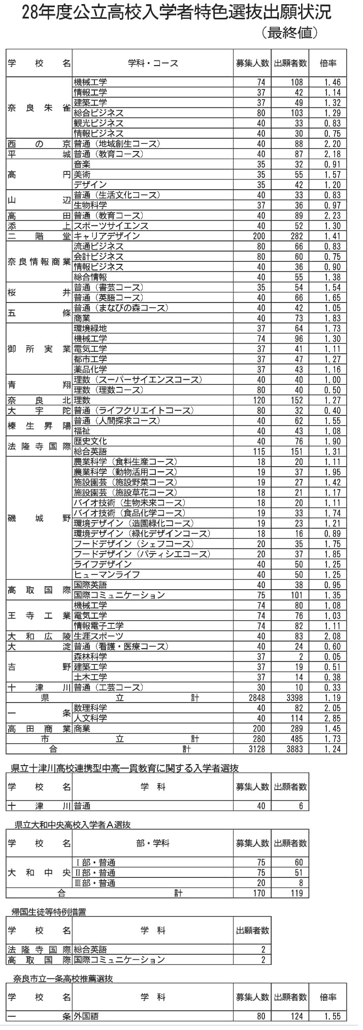 平成28年度の公立高校入試・特色選抜などの出願は16日、締め切られた。