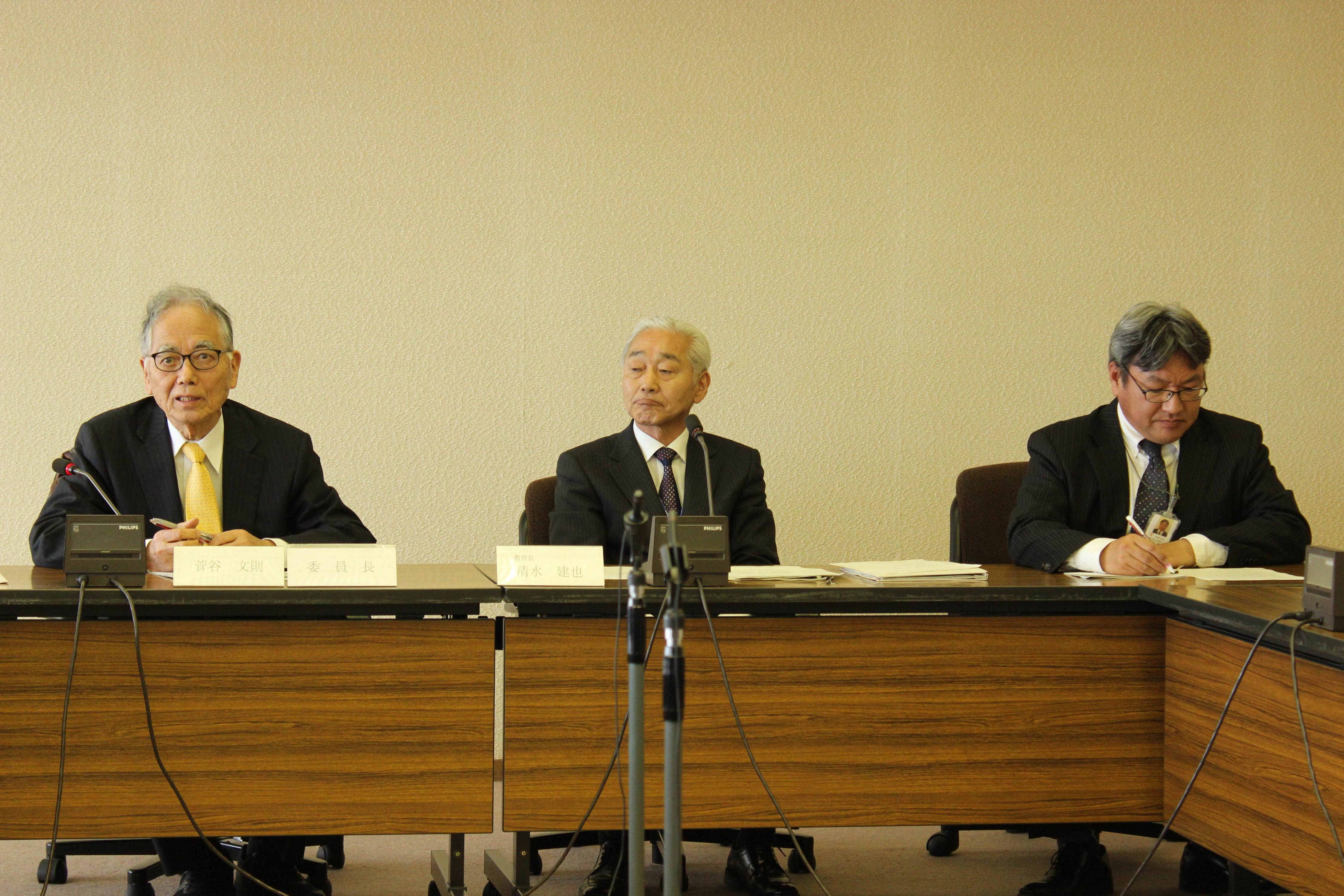委員会で話し合った内容を報告する菅谷文則委員長(左)