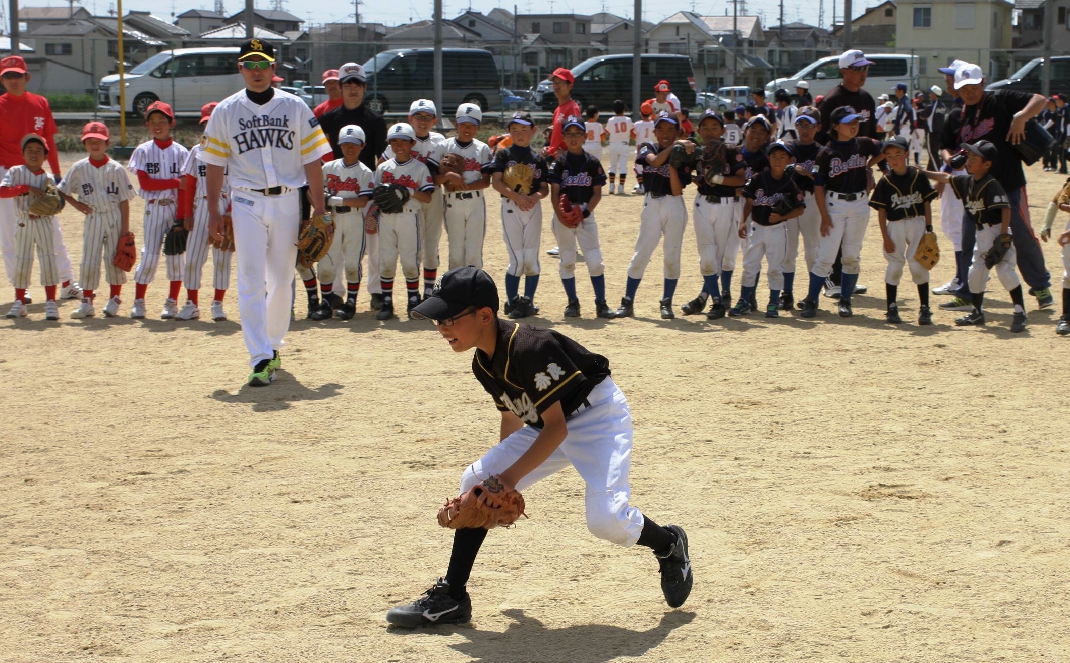 プロの指導で200人が技術学ぶ 大和郡山で少年少女野球教室
