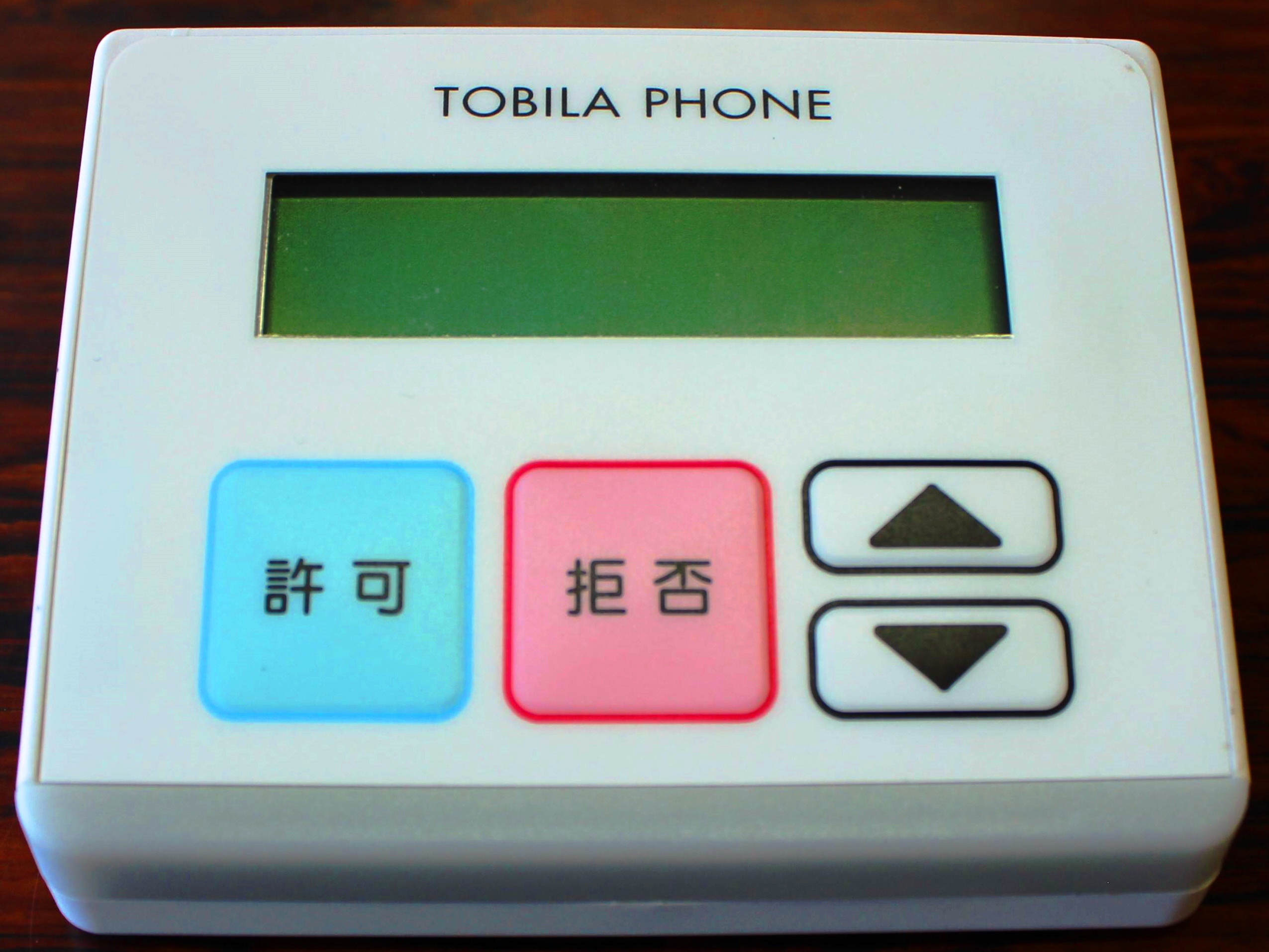 また、現在利用中の電話機に外付けし、迷惑電話からの着信を自動拒否する「トビラフォン」(1万1千円)についても、購入額の半分を補助する。
