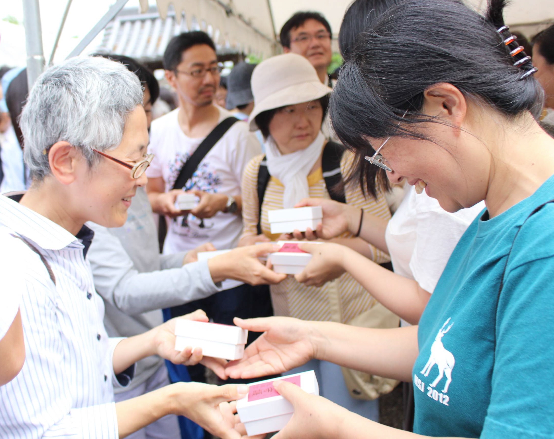 お守りの入った箱には数字が書かれており、奈良筆や赤膚焼の当たるくじ引きも行われた。1等の特大の鷽のお守りを引き当てた奈良市の磯野憲一郎さん(76)は「10年以上来ているが、まさか当たるとは。今年はいい年になりそうです」と話していた。