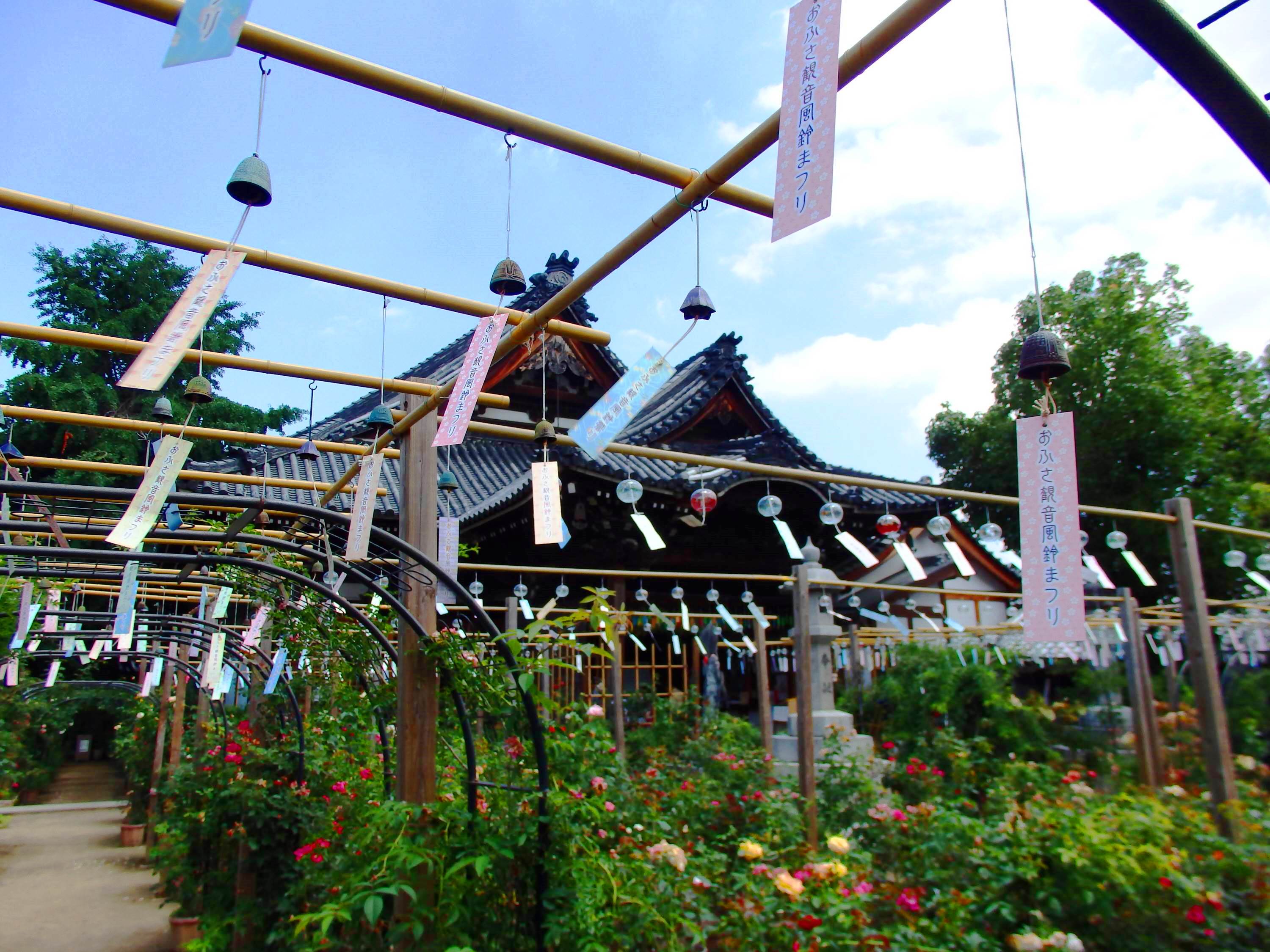 風鈴は鐘の音で厄をはらうという仏教思想から生まれたとされる。寺では、たくさんの風鈴の音で参拝者に心身を癒やしてもらおうと、平成15年から風鈴まつりを開催している。