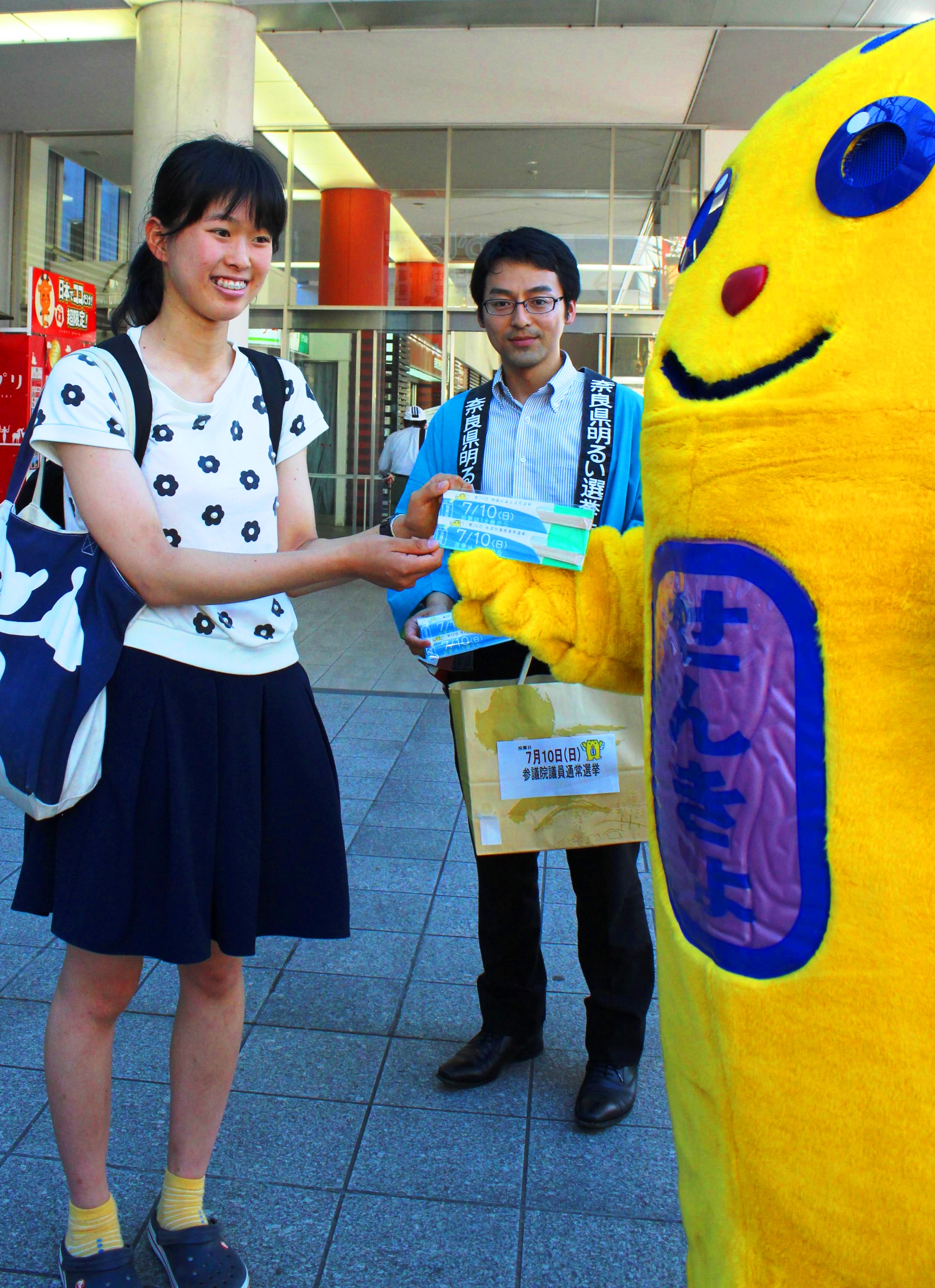 【参院選】10日は投票所へ めいすいくんが近鉄奈良駅前でPR
