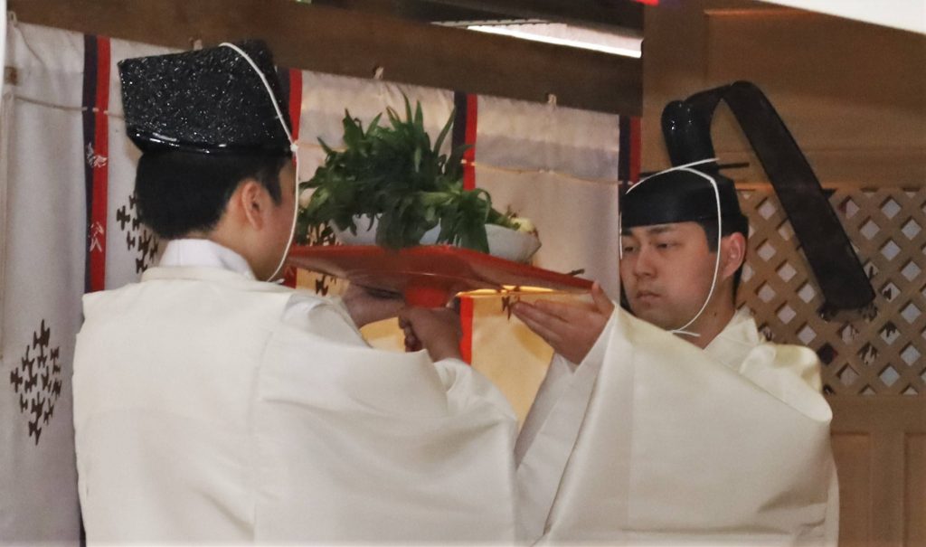 神武天皇が大和平定の折に当地のアユで勝敗を占った―などとする故事にちなみ、川上村漁協が地元の丹生川上神社上社を通じて神武天皇ゆかりの橿原神宮へ奉納することに。神楽殿で今月25日に「初鮎奉献祭」が営まれ、その日の朝に試し釣りしたアユ18匹が神前にささげられ、参列者らが豊漁と釣り人たちの無事故を祈願した。