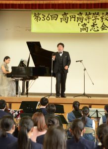 高円高の同窓会としては最後の総会で、同校卒業生や高円芸術高校の在校生ら約300人が参加し、吹奏楽部やコーラス部が演奏や合唱を披露。高円高卒業生でオペラ歌手の桝貴志さん(43)もステージに立ち、艶やかな歌声で唱歌「荒城の月」や歌劇「カルメン」の曲目を披露した。